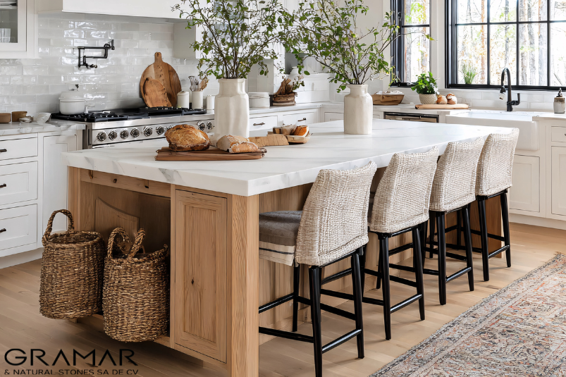 En GRAMAR, empresa especializada en mármol, granito y cuarzo en CDMX y Estado de México, trabajamos con una curaduría de materiales premium pensados para cocinas de lujo. A continuación, te compartimos cinco piedras naturales ideales para este tipo de proyectos.